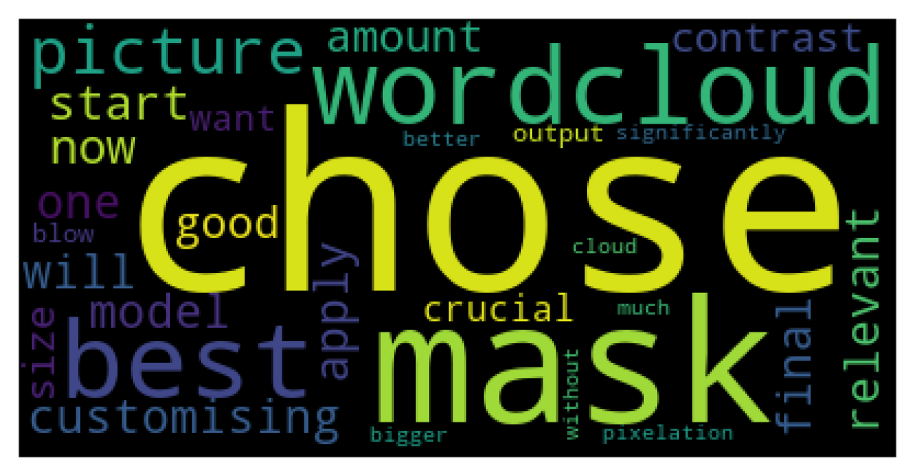 You can now start customising it: chose the relevant mask you will apply to model the final wordcloud. It is best to chose one that has a good amount of contrast to get the best out of your wordcloud, also the mask picture size is crucial if you want to get an output that you can blow up significantly without too much pixelation. The bigger the picture, the better the cloud